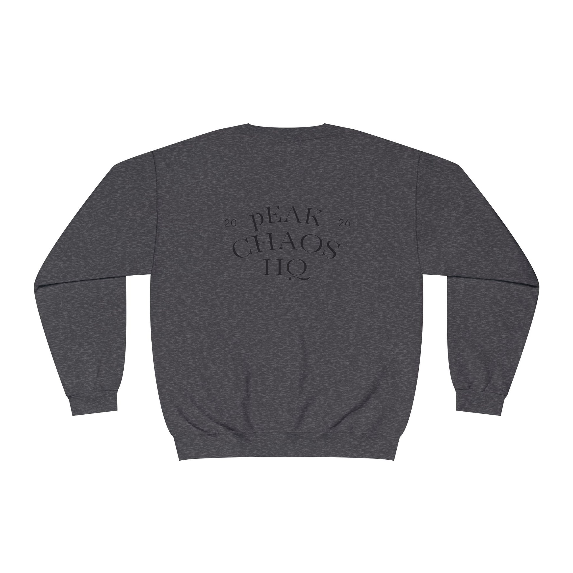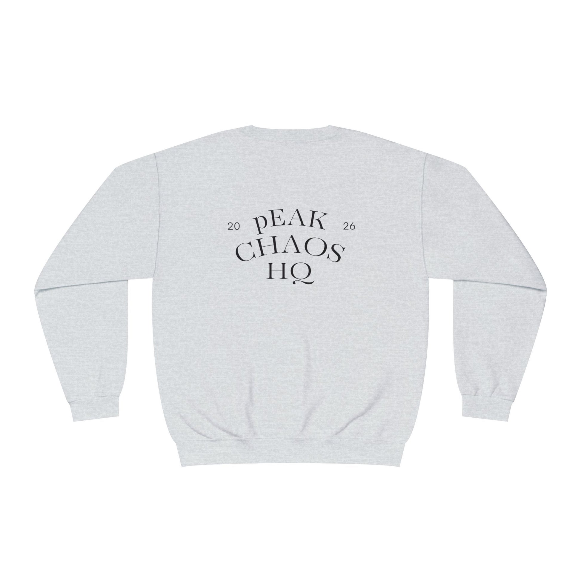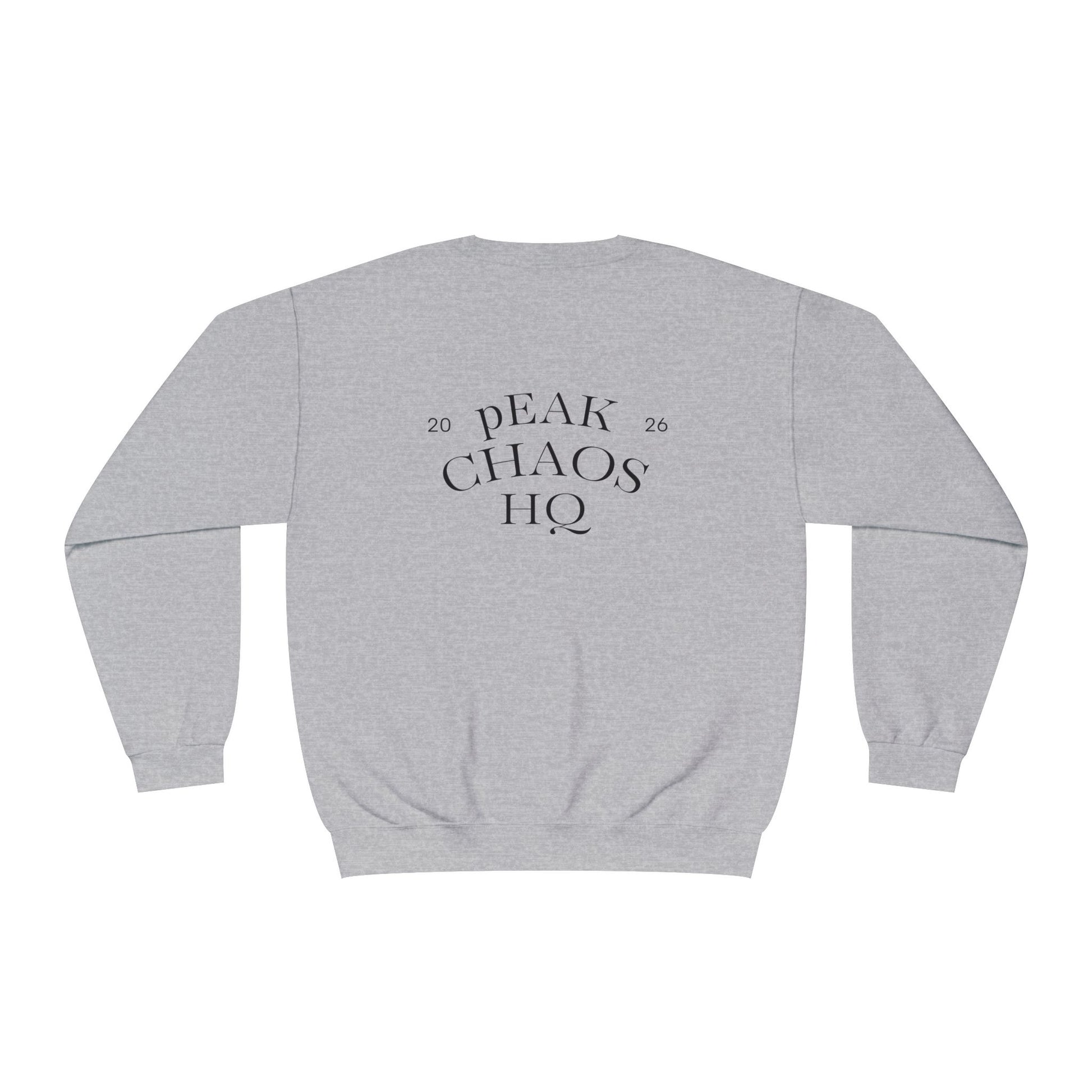 Peak Chaos Crewneck Sweatshirt — 'Peak Chaos Meets Clothing' Graphic